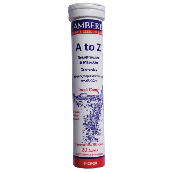 Η πολυβιταμίνη A to Z της Lamberts® είναι μία φόρμουλα ενός αναβράζον δισκίου ημερησίως το οποίο παρέχει σχεδόν όλα τα απαραίτητα μικροθρεπτικά συστατικά, πολλά εκ των οποίων στο 100% του RDA.