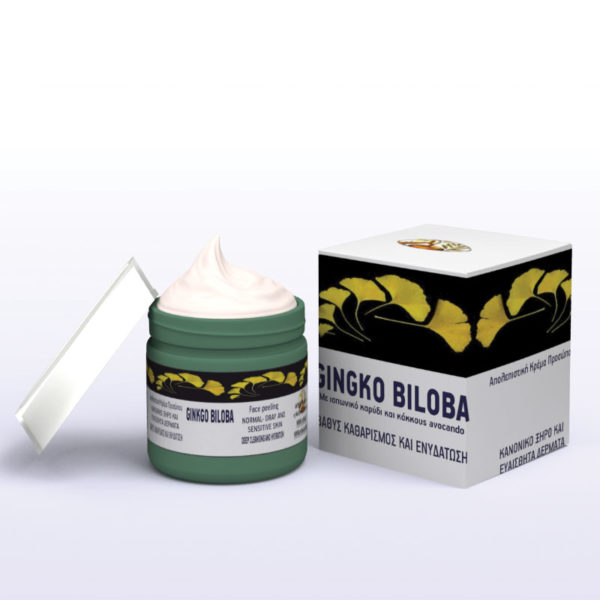 Άνθεια Scrub προσώπου Gingko Biloba 50ml. Απαλή κρέμα καθαρισμού προσώπου για φυσικό peeling, σε κανονικό και ξηρό και ευαίσθητο δέρμα.