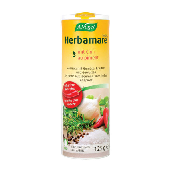 Το Herbamare Spicy συμπληρώνει τη διατροφή με ιώδιο και μεταλλικά άλατα όπως μαγνήσιο, ασβέστιο, κάλιο, κ.α. Αντικαθιστά το κοινό αλάτι, νοστιμεύει και αρωματίζει σαλάτες και φαγητά.