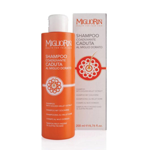 Σαμπουάν κατά της τριχόπτωσης, με εκχύλισμα χρυσαφένιου κεχριού, κατάλληλο για όλους τους τύπους μαλλιών.
