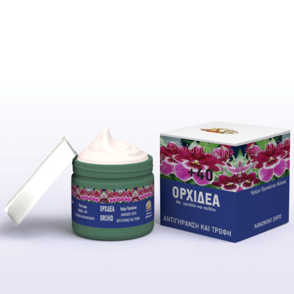 Πλούσια κρέμα προσώπου νύχτας Ορχιδέα για ηλικίες 40+. Είναι γνωστό ότι τις βραδινές ώρες του ύπνου, που ο οργανισμός αναπαύεται, απορροφά καλύτερα όσα συστατικά του δίνουμε. Η αναζωογονητική αυτή κρέμα, με τα θρεπτικά έλαια που περιέχει, βοηθά αποτελεσματικά την ξηρή επιδερμίδα.