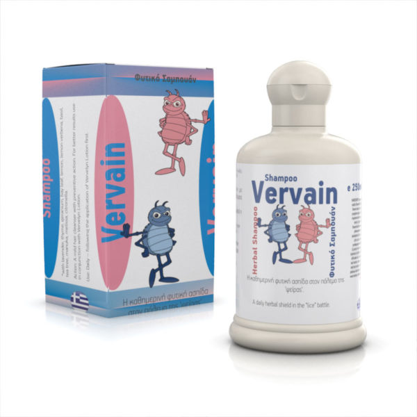 Σαμπουάν που αποτελεί την καθημερινή φυτική ασπίδα στον πόλεμο της ‘ψείρας’. Ήπιο καθαριστικό μαλλιών με προληπτική δράση. Για καλύτερα αποτελέσματα χρησιμοποιείστε και την λοσιόν Vervelyn.