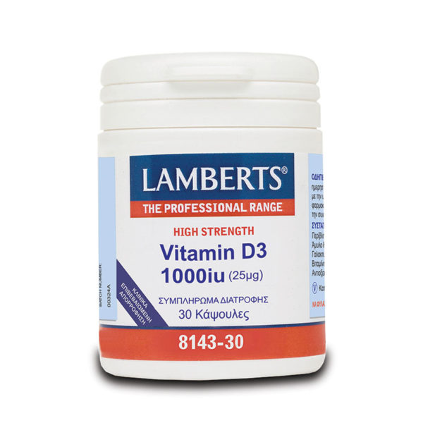 Η Βιταμίνη D 1000iu της Lamberts αποτελεί ένα κλινικά επιβεβαιωμένο συμπλήρωμα διατροφής το οποίο παρέχει εγγυημένα 1000iu (25μg) Βιταμίνης D σε μορφή χοληκαλσιφερόλης (D3) και όπως όλα τα σκευάσματα της Lamberts, παρασκευάζεται εντός του Ηνωμένου Βασιλείου σύμφωνα με τα αυστηρά πρότυπα της Φαρμακευτικής GMP (Pharmaceutical GMP).